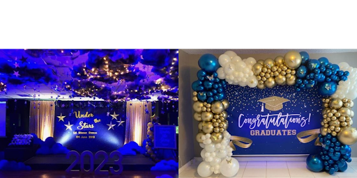 Acara sekolah atau kampus seperti halnya prom night atau wisuda, seringkali menggunakan balon event sebagai hiasannya untuk memperindah suasana dan memberikan kesan lebih baik. Balon angka atau huruf digunakan untuk menunjukan tahun kelulusan atau nama acara menjadikan nya bagian paling penting dalam dekorasi balon event ini. Balon mozaik yang dibentuk seperti logo sekolah atau pesan tertentu yang sering menjadi latar belakang pada panggung. Balon centerpiece menghiasi meja-meja di acara tersebut serta balon pop drop yang berada di dalam jaring besar yang menunjukan pada penghujung acara yang memberikan hal mengesankan bagi para peserta.